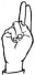 На ћирилици написано МИЛИЋ СТАНОЈЕВИЋ састоји се из 15 слова [?]. Исписано ћириличном једноручном азбуком за глувонеме: